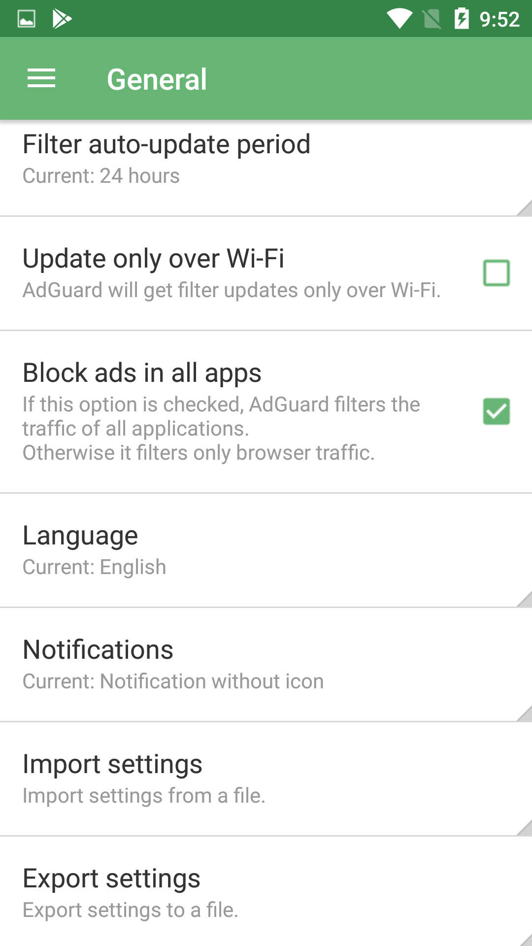 AdGuard for Android是用於Android行動裝置的理想解決方案。與其它的廣告封鎖器相比,AdGuard不需要root權限且它提供廣泛範圍的功能:於應用程式的過濾、應用程式管理和更多。