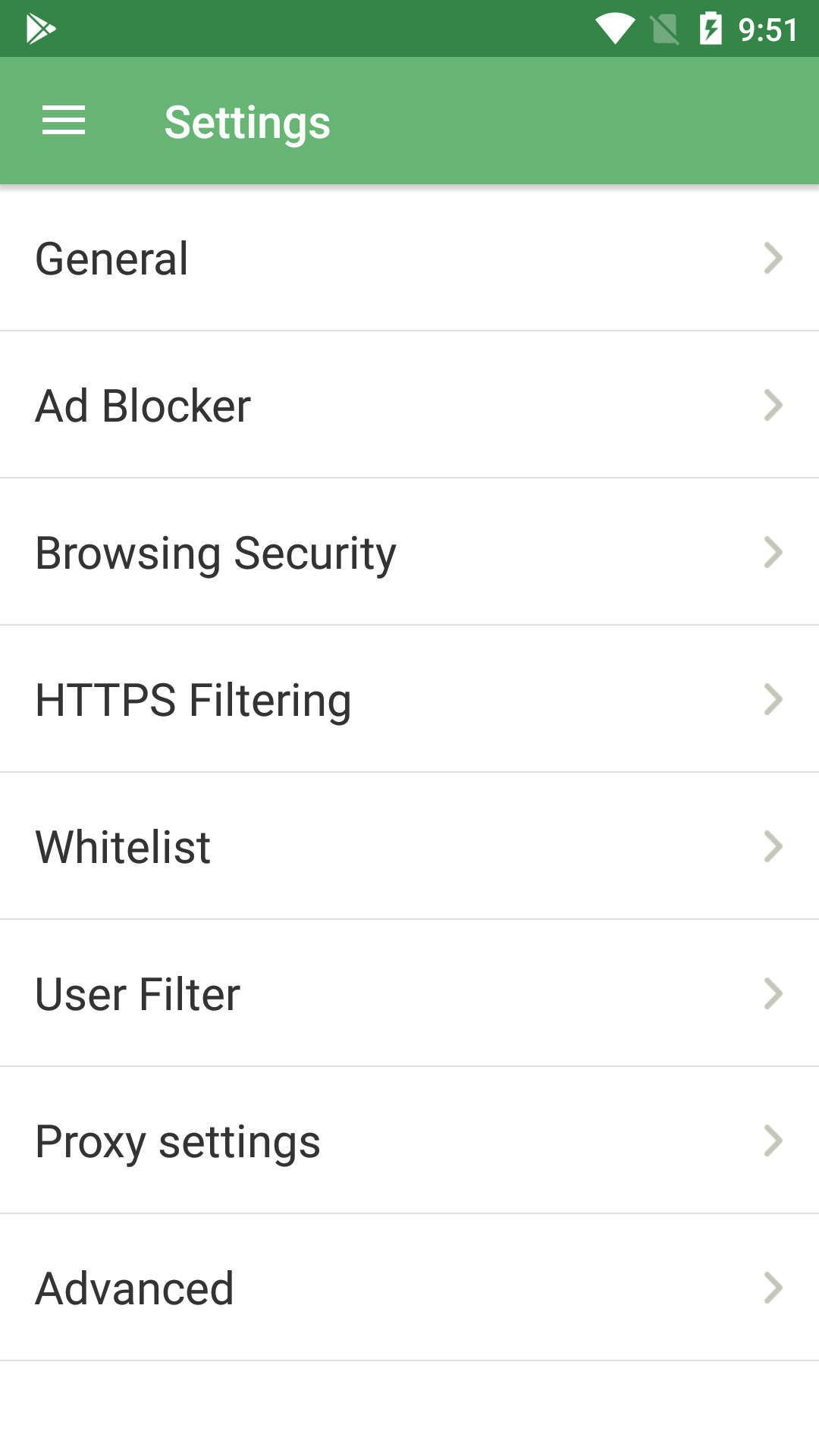 AdGuard for Android是用於Android行動裝置的理想解決方案。與其它的廣告封鎖器相比,AdGuard不需要root權限且它提供廣泛範圍的功能:於應用程式的過濾、應用程式管理和更多。