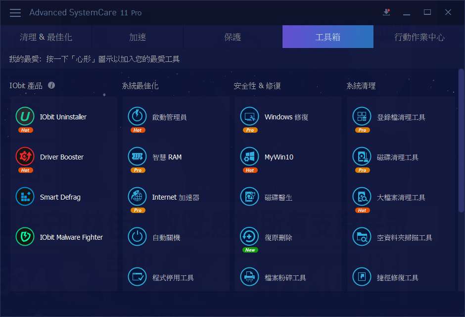 小工具,如自動關機、復原刪除、一些實用的工具,Pro是需要付費的,可選擇沒有Pro的項目。