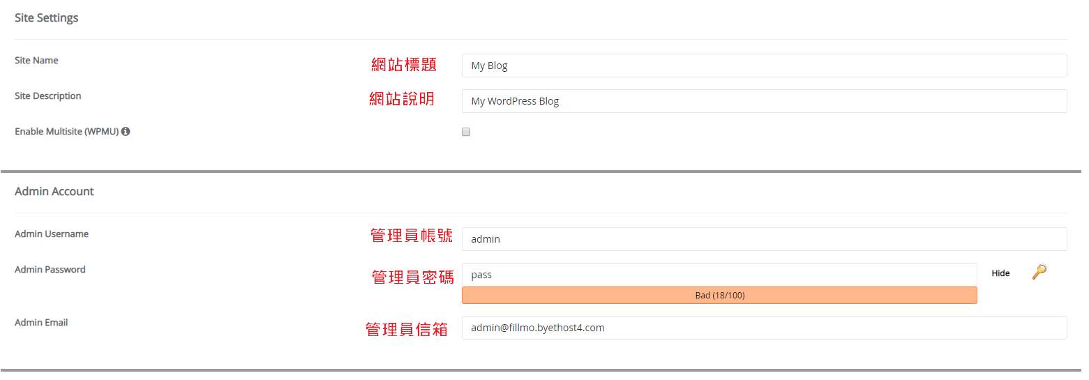 網站標題、網站內容介紹、帳號密碼設定、這些都可從Wordpress後台設定更改。