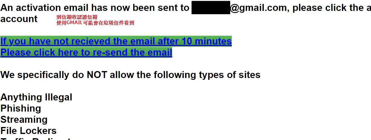 收認證信,使用gmail信箱,如果找不到信件請到垃圾信箱找。