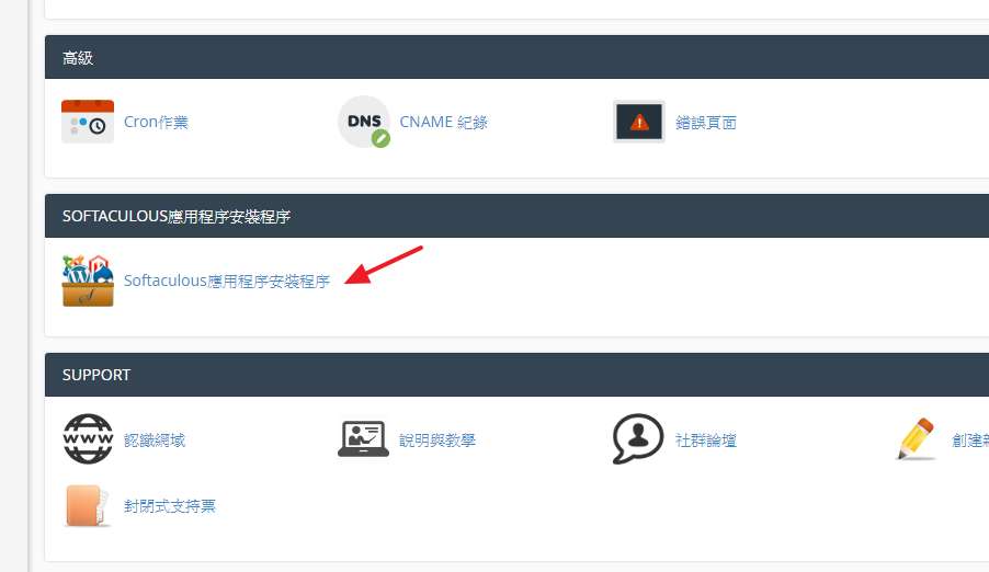 安裝Wordpress,選擇Softaculous應用程序安裝程序。