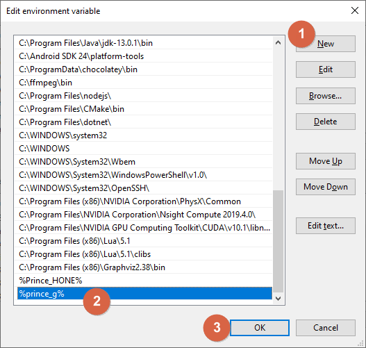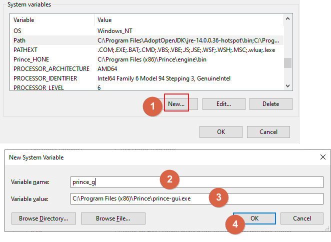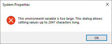 問題 設定環境變數出現2047解決的方法,google可以找到許多種方法,我覺得滿實用的一種快速解決方法。 解決方法 到環境變數 WIN + R 輸入 SystemPropertiesAdvanced 設定一個變數,想要設定的檔案程式路徑 到Path設定上方所設定的變數,輸入%變數名稱% 例如:設定%prince_g 會自動去找這個變數的路徑