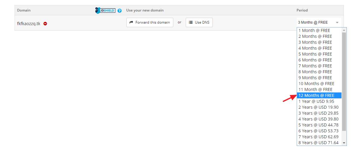 右邊下拉選單選擇12個月、免費一次註冊最高只能12個月。
