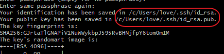 Enter a file in which to save the key (/c/Users/you/.ssh/id_rsa):[Press enter]
