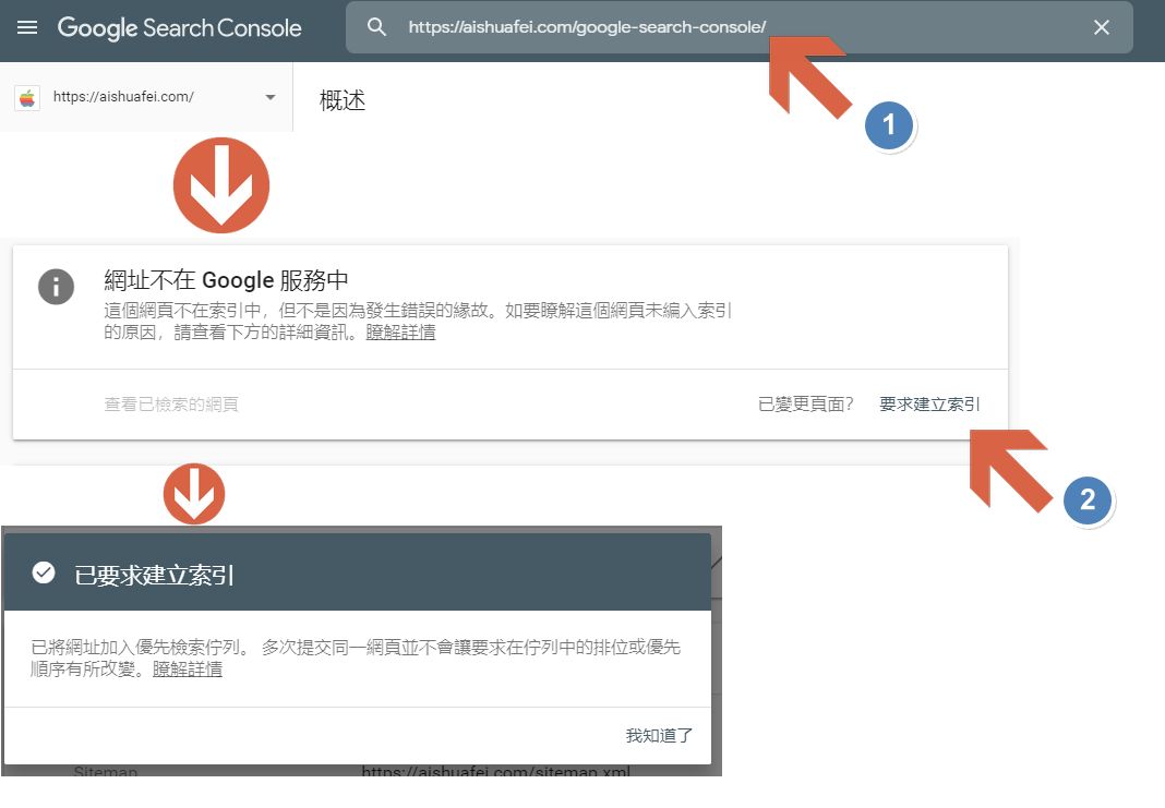 第一個部分設定Sitemap讓google會自動爬你的網站,爬網速度不會很快,需要時間等待。
