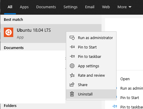 移除Ubuntu方法,搜尋Ubuntu 右鍵選擇 Uninstall
