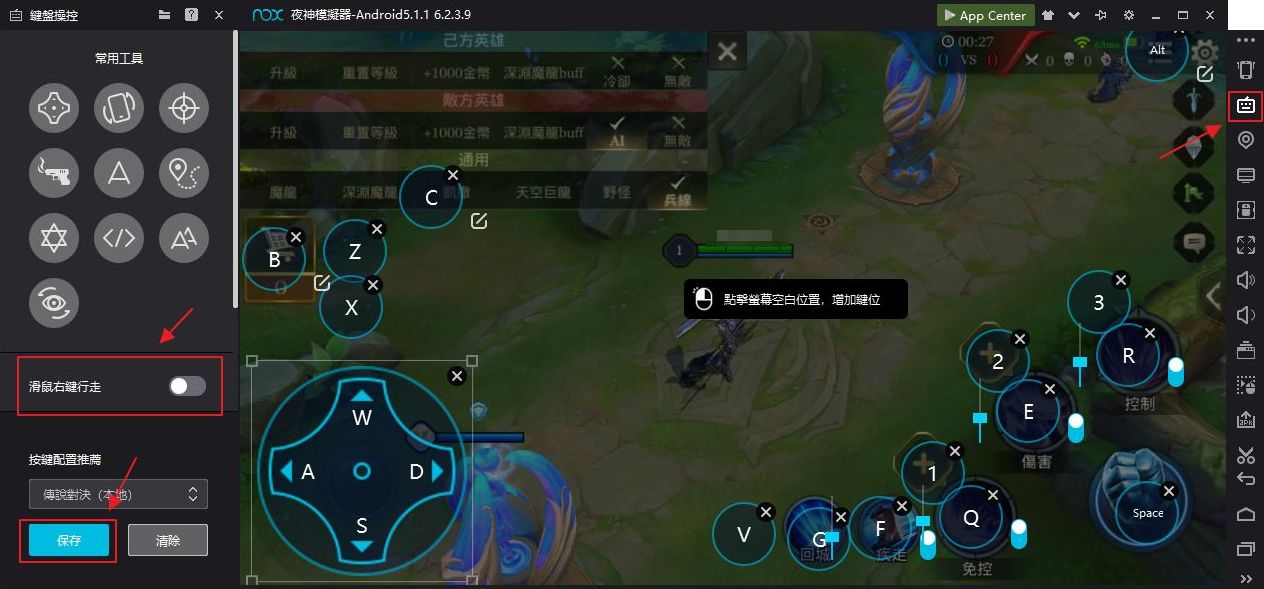 現在夜神模擬器已經支援相當多的遊戲,官方也會隨遊戲的改版去做優化,按鍵也會依遊戲設計而去做一個設定,現在來看看夜神模擬器玩傳說對決簡單的設置。