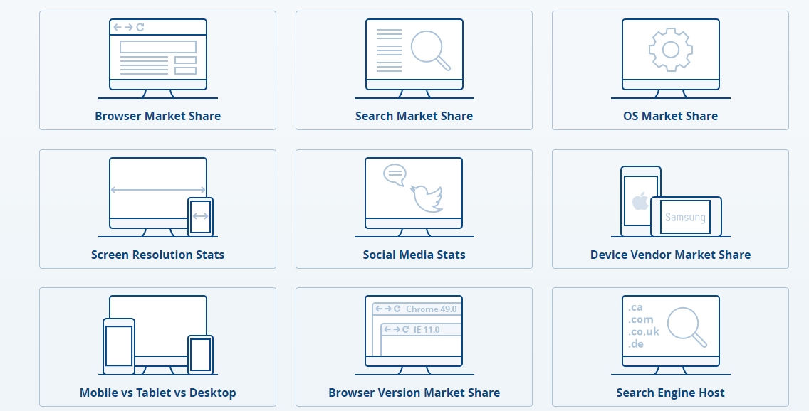 可以查詢瀏覽器、社群媒體、智慧型設備的市占率