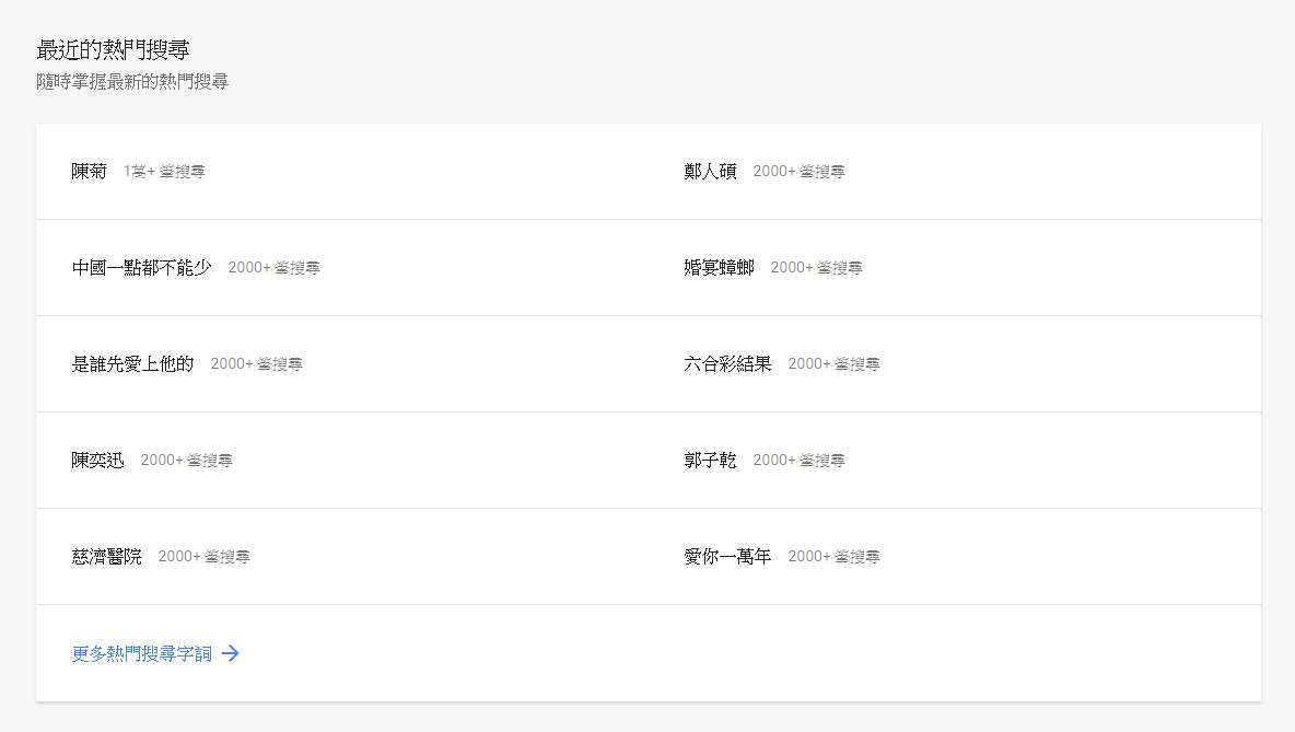 進入網站後,往下滑會看到”最近的熱門搜尋”搜尋熱度最高的,時間是2018/11/18的熱門搜尋度。