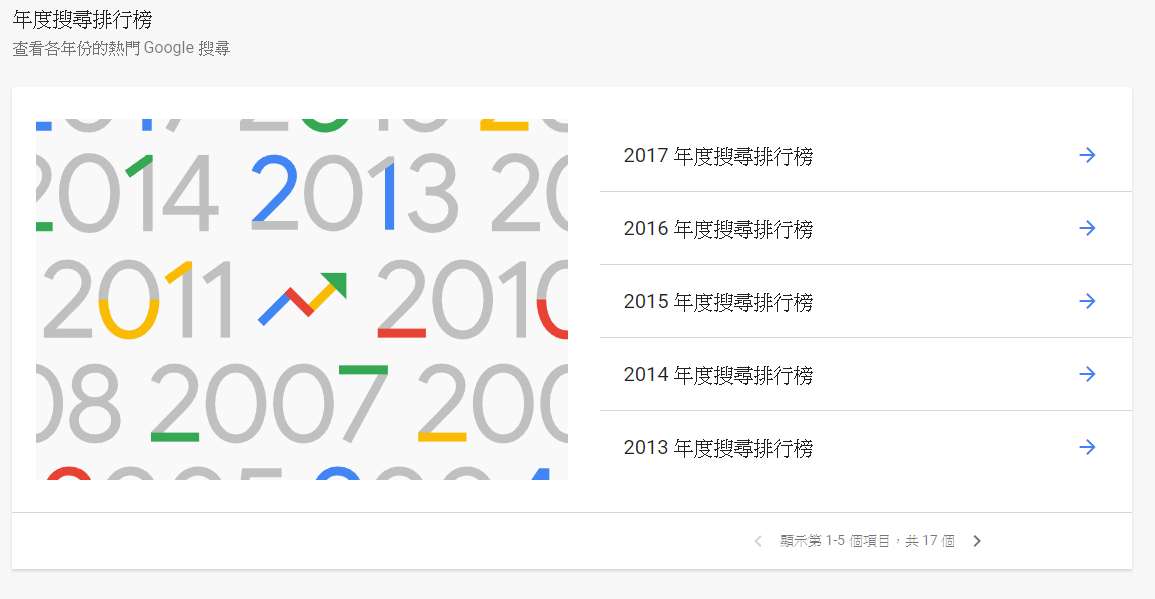 在往下滑,可以查詢年度搜尋最熱門的關鍵字。