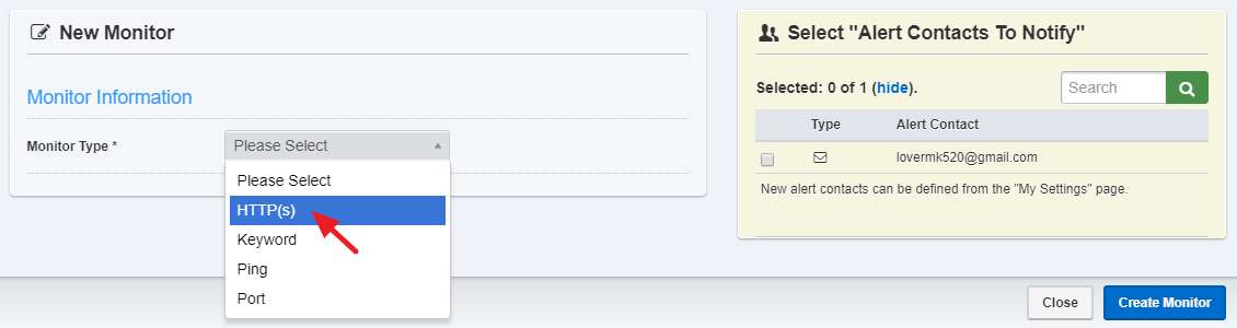 選擇For all the monitors,如果想要只監測單一個網站可選For selected monitors,設定好之後選擇右下Create。