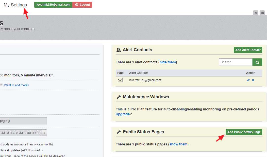 設定一個監測網站給任何人觀看,上方My Settiogs>Add。