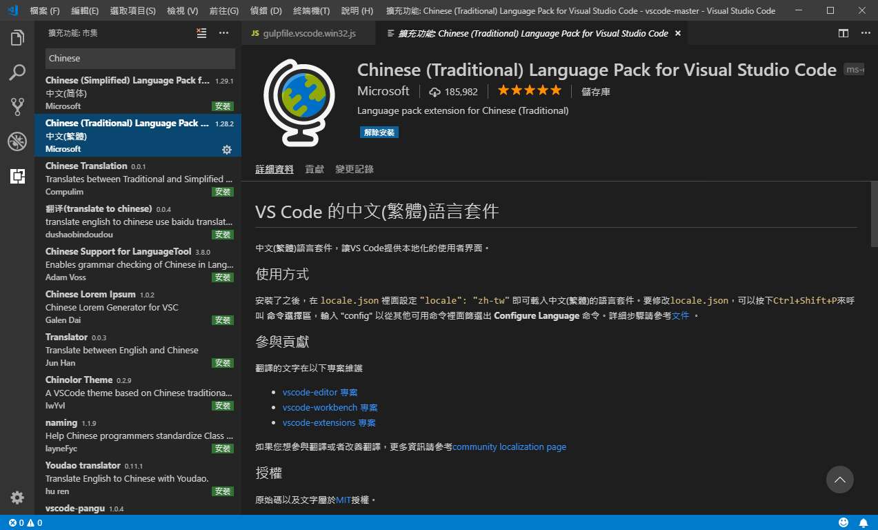 超越Sublime、Notepad+編輯器,VS Code很年輕2015開發至今,是微軟開發的且是開源,開源出處 Visual Studio Code github,還有更多擴充可以安裝。