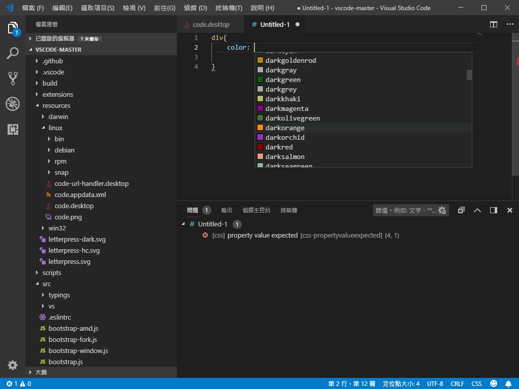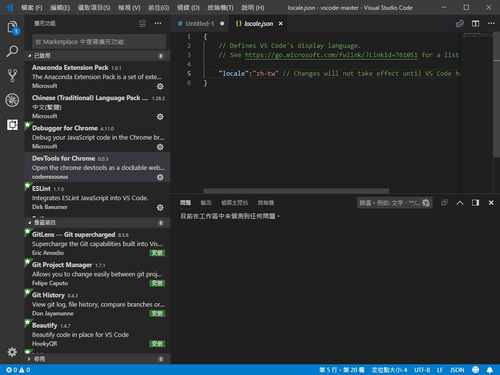 將設定en改成zh-tw儲存檔案,重新開啟VSCODE。