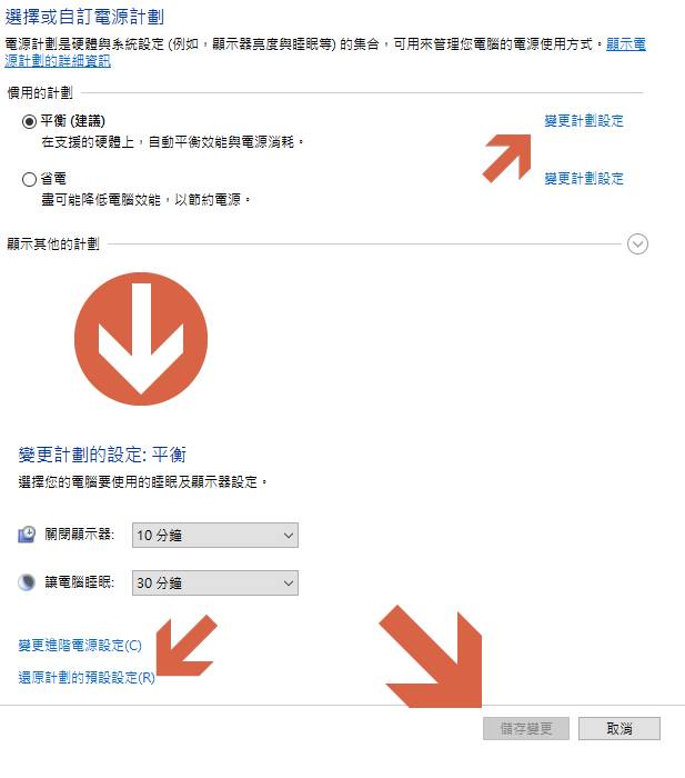問題 在謀次更新Windows 10 之後電腦睡眠竟然無法使用滑鼠及鍵盤喚醒,要解決這個問題非常簡單快速,只需要還原計畫設定就可以了,來看看怎麼操作吧。 設定教學 請到設定>選擇(電源與睡眠)>其他電源設定。 選擇(變更計畫設定) > 按下還原計畫的預設設定 > 儲存變更。 讓電腦睡眠試試看滑鼠及鍵盤是否可以成功喚醒。
