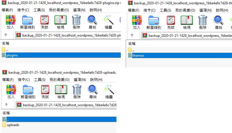 需要搬移的資料有themes、plugins、uploads。