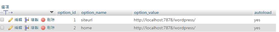 將siteurl及home,修改為本地網址。