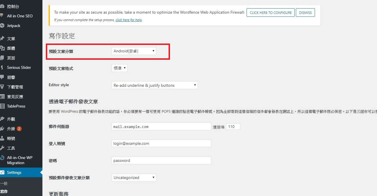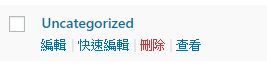 使用wordpres可能會發現Unctegorized無法刪除,但是是可以刪除的喔,下面教你怎麼去刪除Unctegorized(未分類)。 請先到 Settings > 寫作 將 Unctegorized 分類先隨便改成一個分類,改完後到分類。 發現 Unctegorized 出現可以刪除的選項了。 去刪除Unctegorized吧