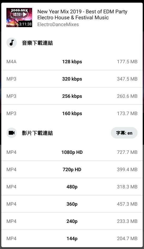 - 下載各種格式的 YouTube: mp3,opus,webm,mp4